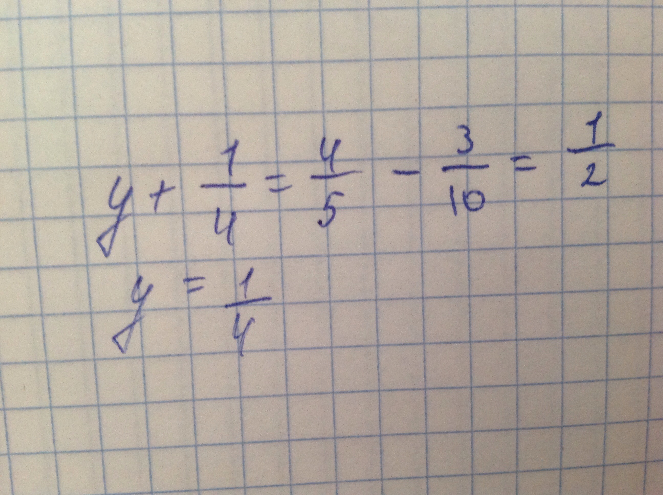 у+1/4=4/5-3/10=?