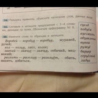 муравей - муравья - муравьи, ручей - ручья - ручьи.