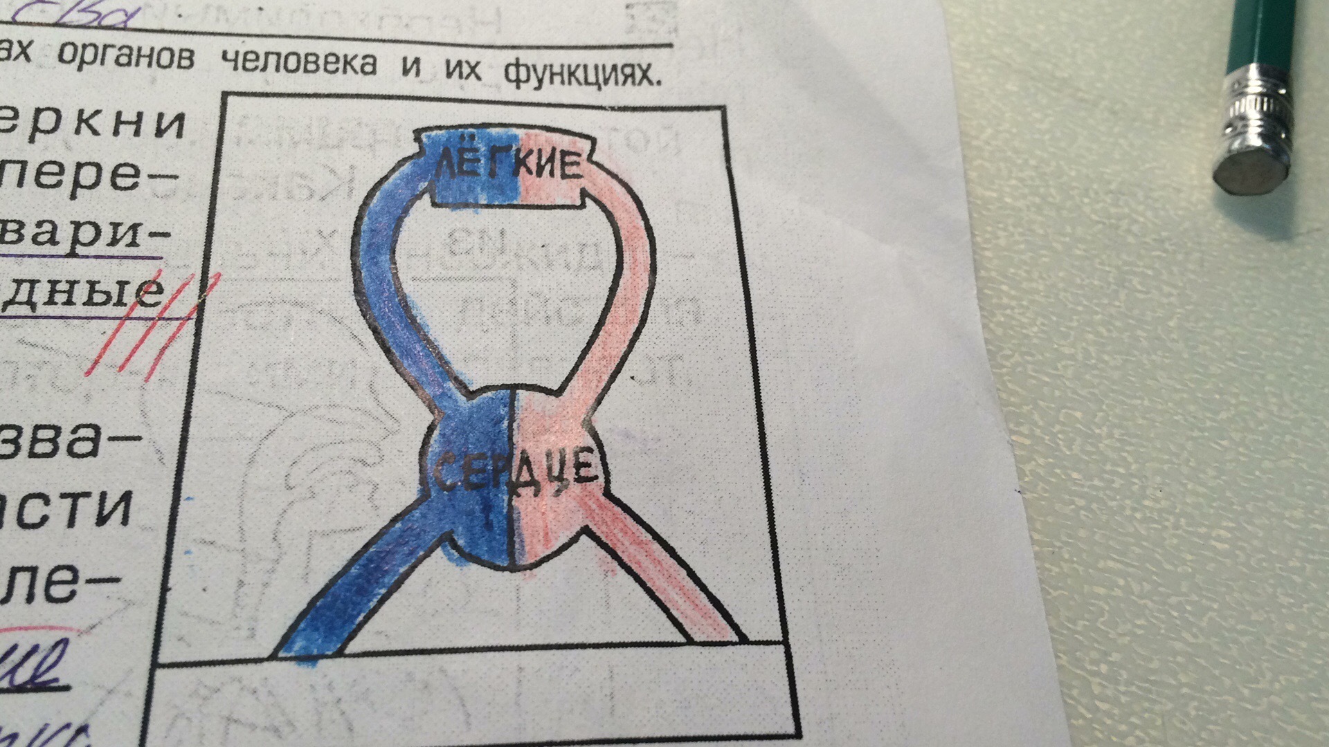 красным нарисоавнно артериальное движение крови, а синим венозное