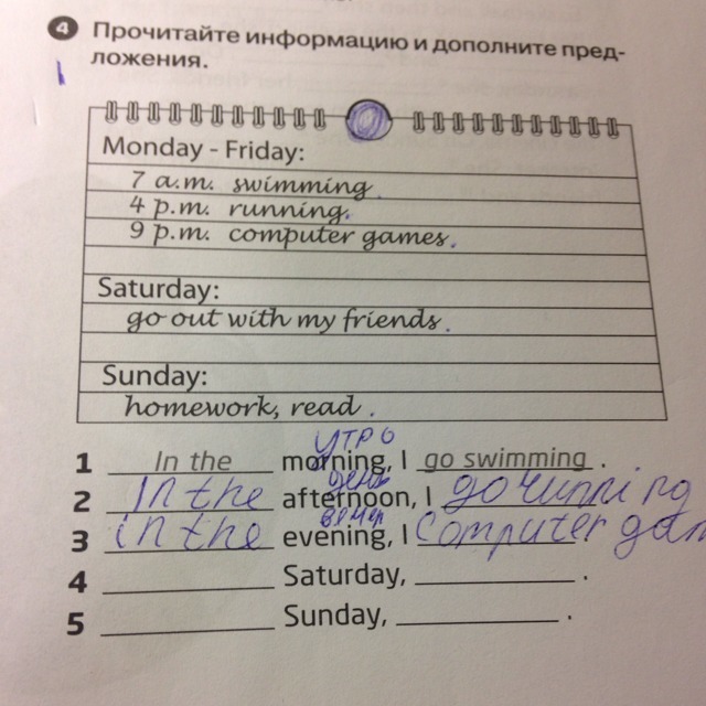 Помогите пожалуйста осталось Saturday Sunday номер 4