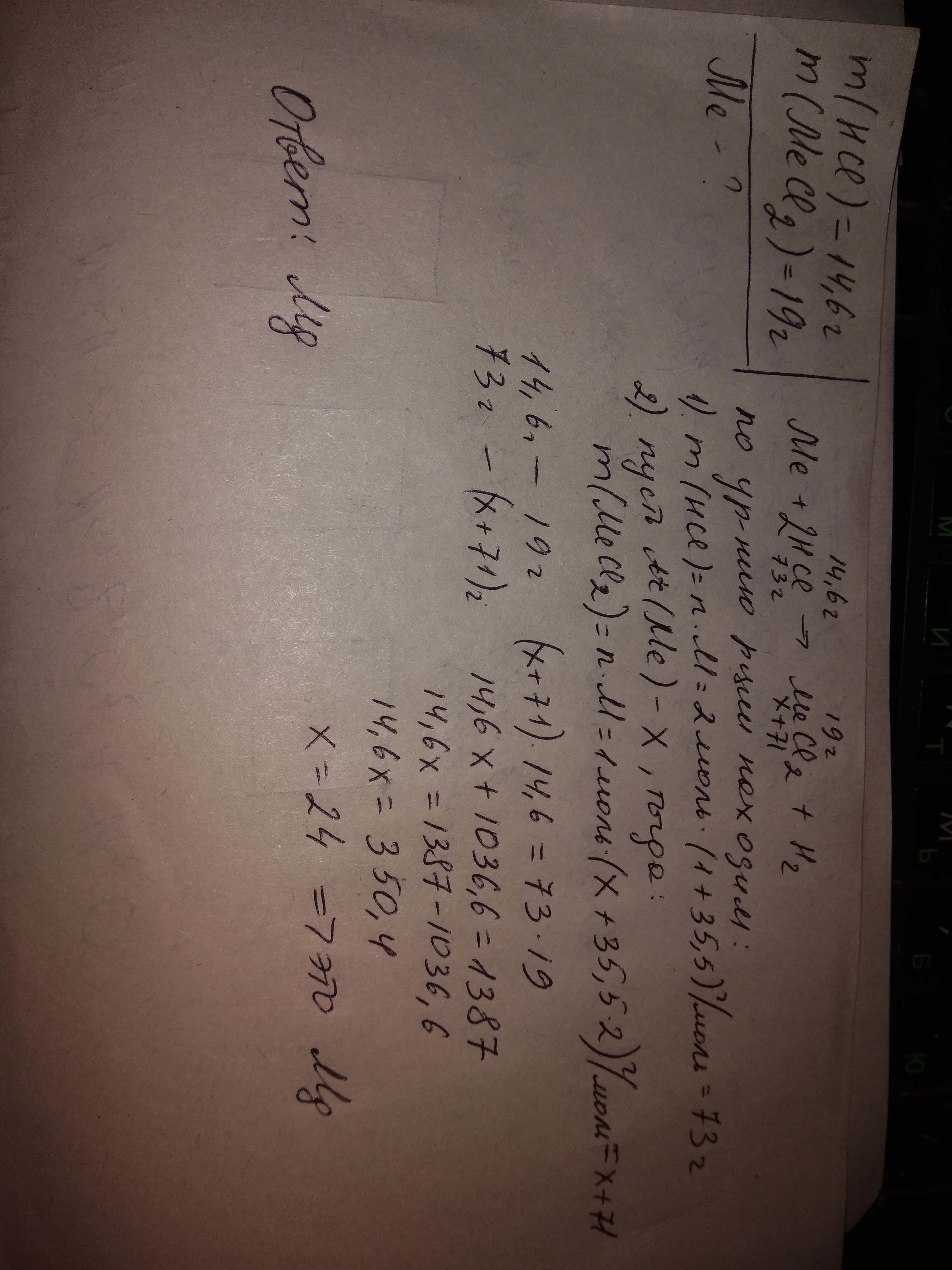 При взаимодействии двухвалентного металла с 14,6г соляной кислоты образовалось 19г хлорида этого металла. Какой металл был взят?