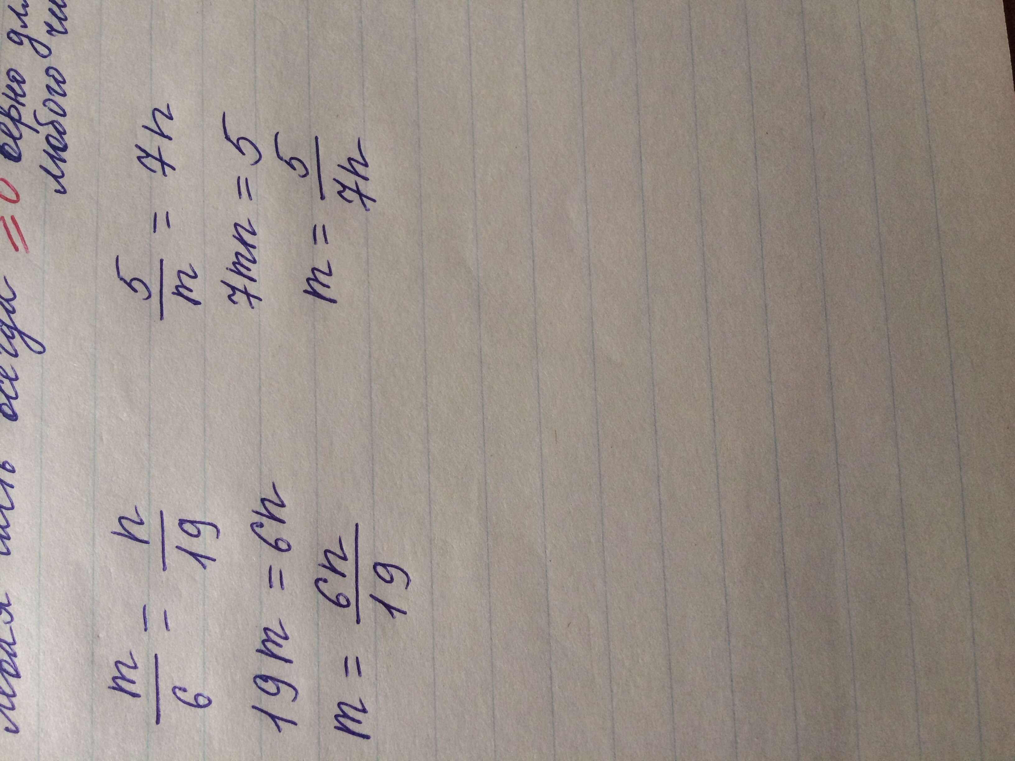 найти отношение m к n если: m:6=n:19; 5:m=7n: