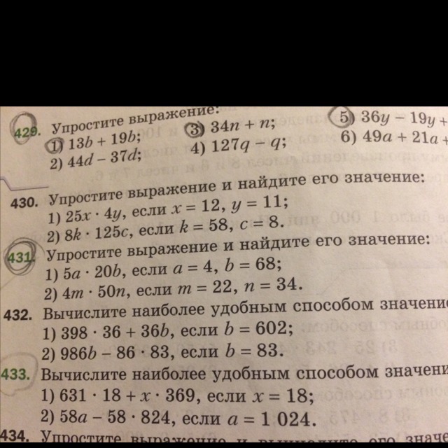 Упростите выражение и найдите его значение: 1) 5а*20б, если а=4, б=68; 2) 4м*50н, если м=22, н=34
