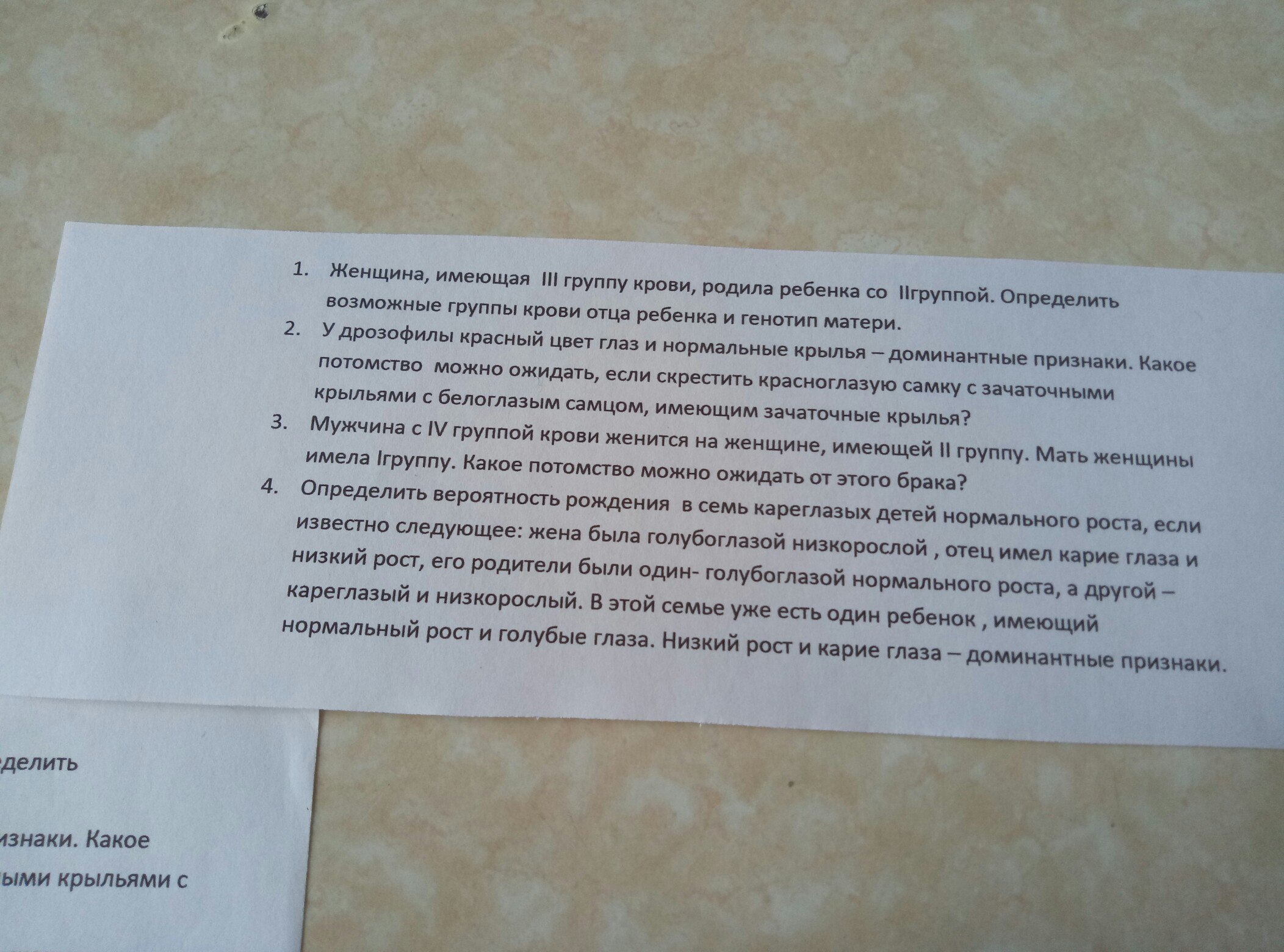1. Мать имеет группу крови (ВО) 3,отец имеет либо (АА) 2,либо (АО) 2 или (АВ) 4,сын имеет группу крови (Ао) 2