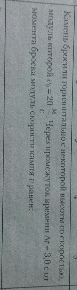 камень бросили горизонтально с некоторой высоты со скоростью ,модуль которой 20м/с