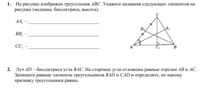 AA1 - биссектриса, ВВ1 - медиана, СС1 - высота