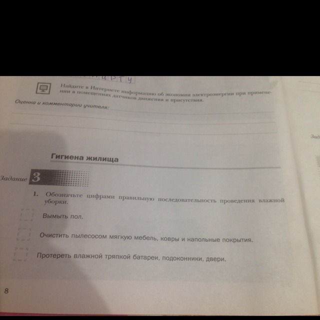 Обозначьте цифрами правильную последовательности проведения влажной уборки
