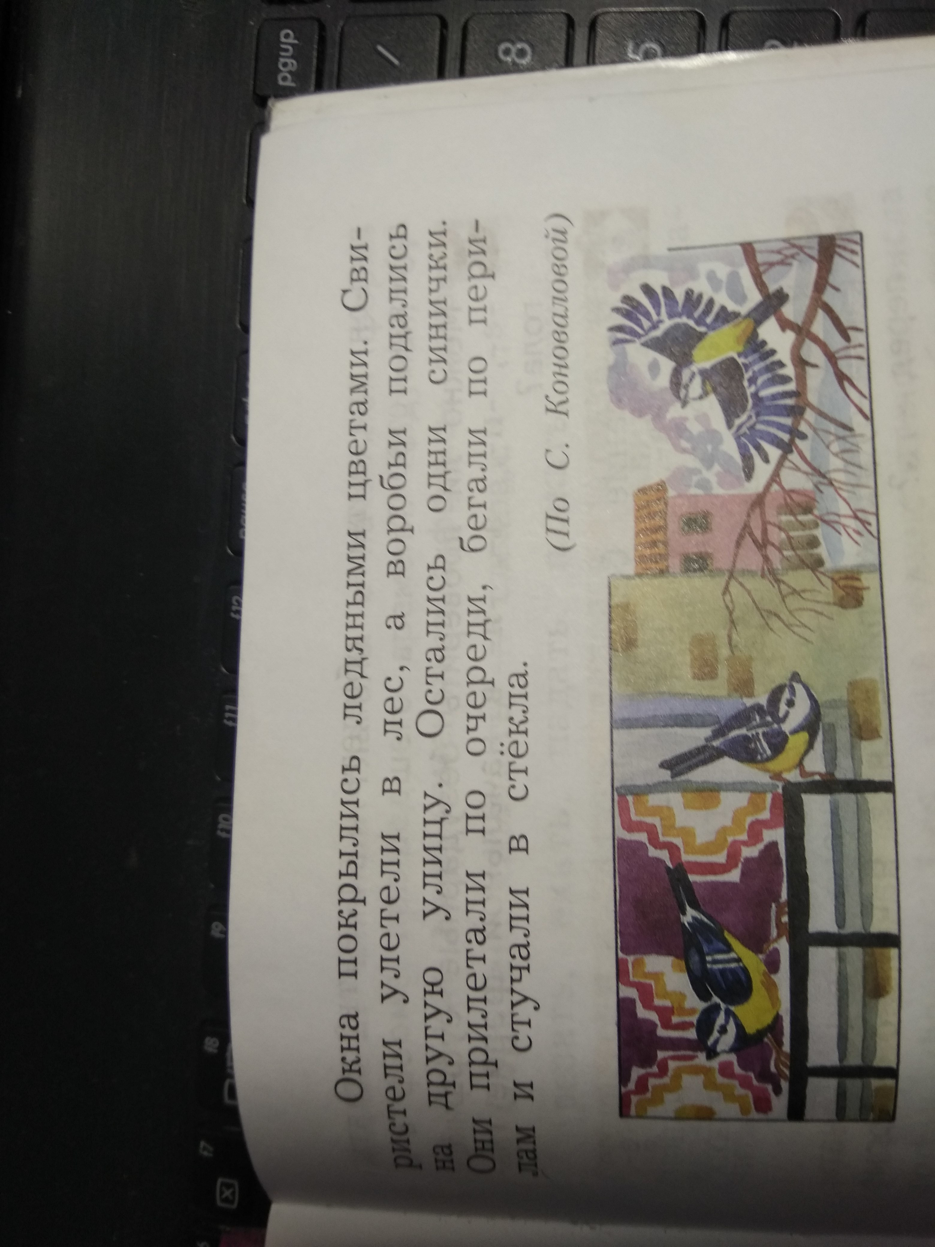 Затем, через несколько дней они поняли, что еды уже не будет. Птицы улетели они еле летели от холода и голода! Но им повезло и пролетевсовсем чуть-чуть увидели кормушку. Съев все зёрна что там были они остались. На следующий день еды было больше. Там они кормились до весны.