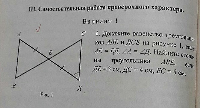 угол а = углу д, там где Е углы равны как вертикальные, следовательно треугольники равнв по 2 признаку. АЕ=3СМ, АВ=4СМ,АЕ=5СМ