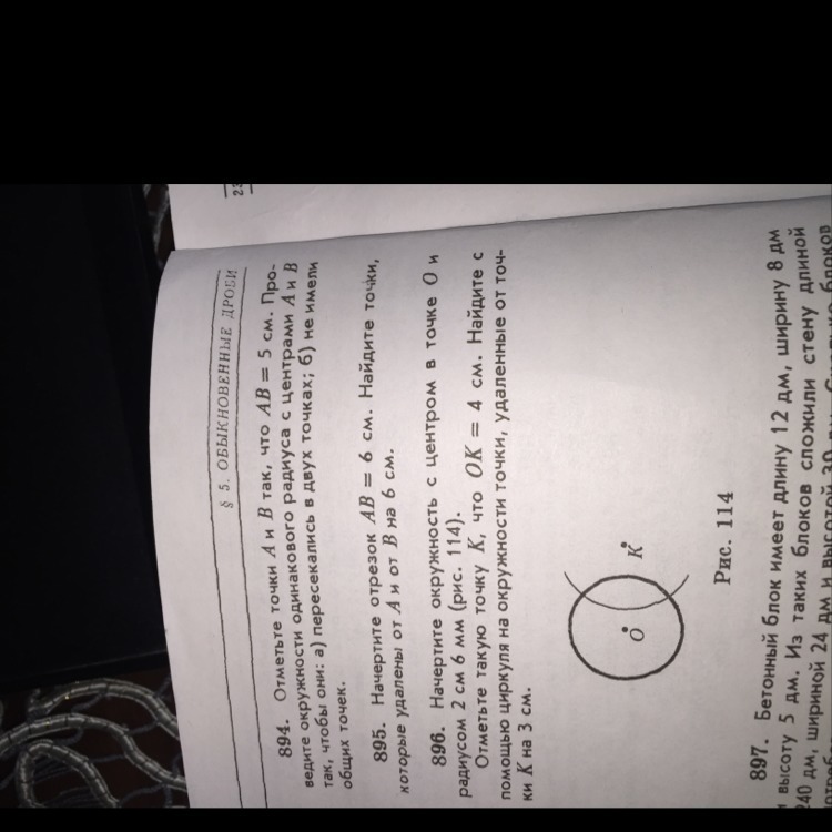 раскрываешь циркуль на 3 см (по линейке), ставишь в точку К и проводишь, как на рисунке, окружность. Точки пересечения окружностей обозначаешь А и В. Это и есть точки, удаленные от К на 3 см.