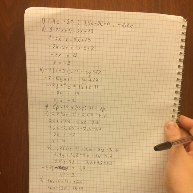 6) 1,2(2y-4)+0,6=3y-3,6