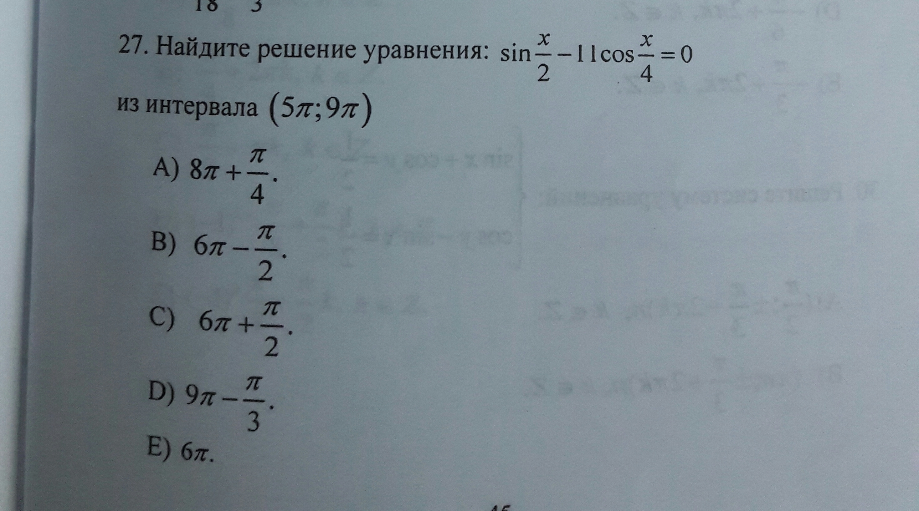 Помогите решить один пример, с вариантоми ответов.Это тригонометрическте уравнение.Прошу вас,это очень срочно.