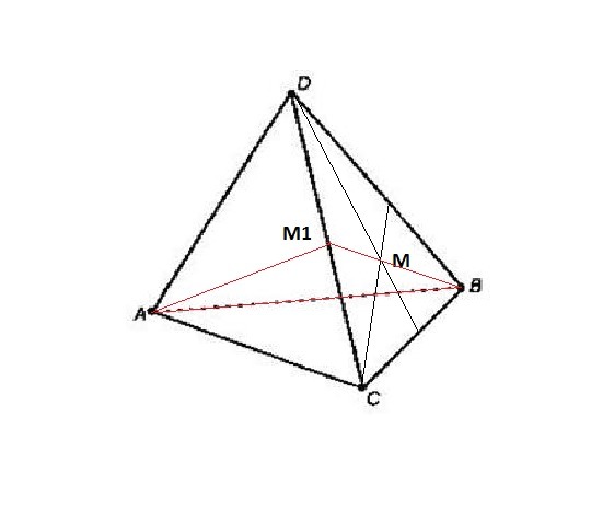 Постройте сечение тетраэдра АВСD плоскостью, проходящей через точки А, В и М, где М - точка пересечения медиан грани BСD.