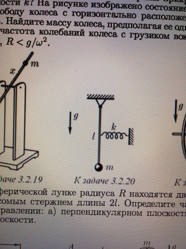 Как изменится частота колебаний маятника, представляющего собой груз на легком стержне, если к середине стержня прикрепить горизонтальную пружину жесткости k? На рисунке изображено состояние равновесия.