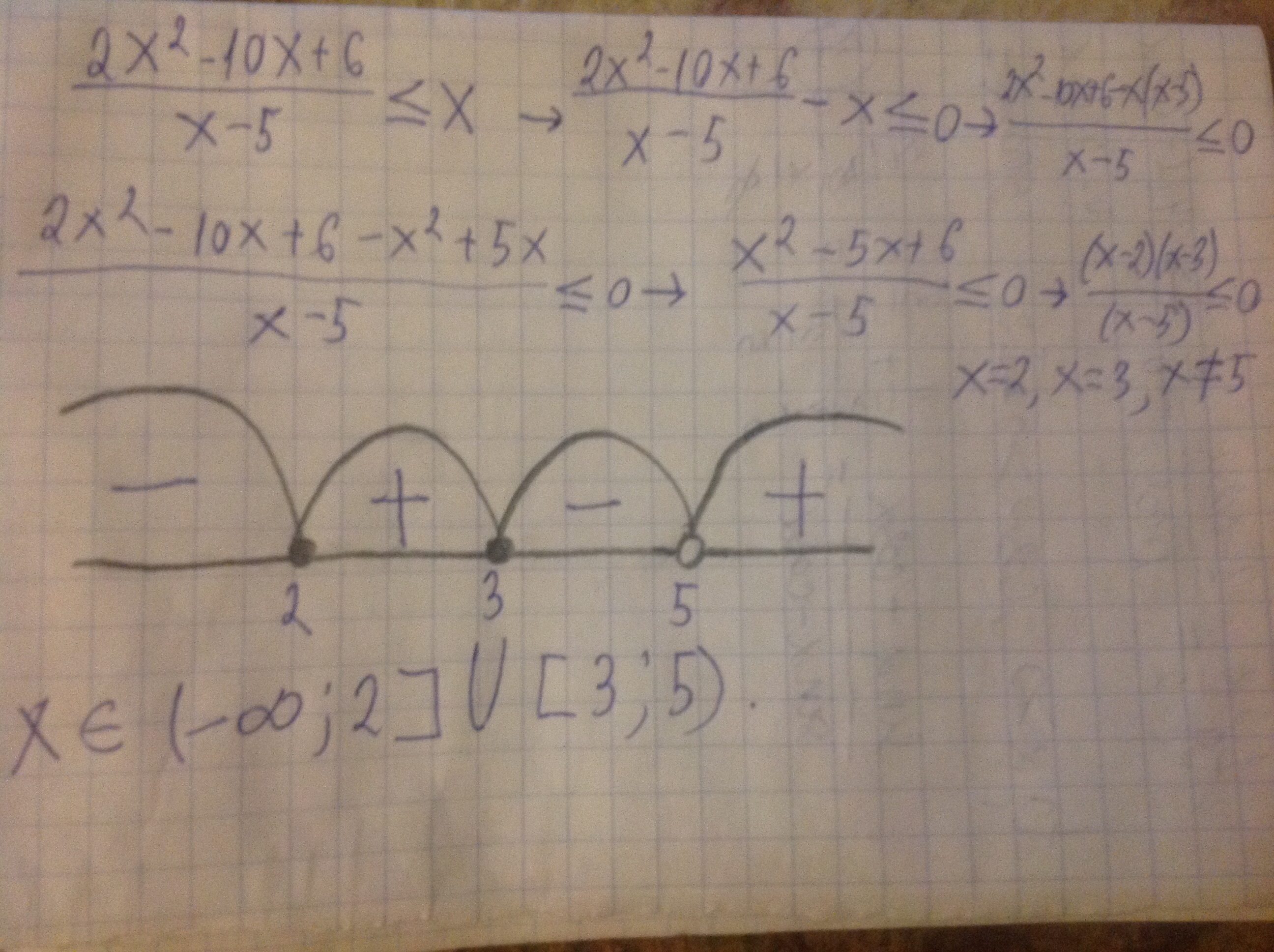 (2x²-10x+6-x²+5x)/(x-5)≤0