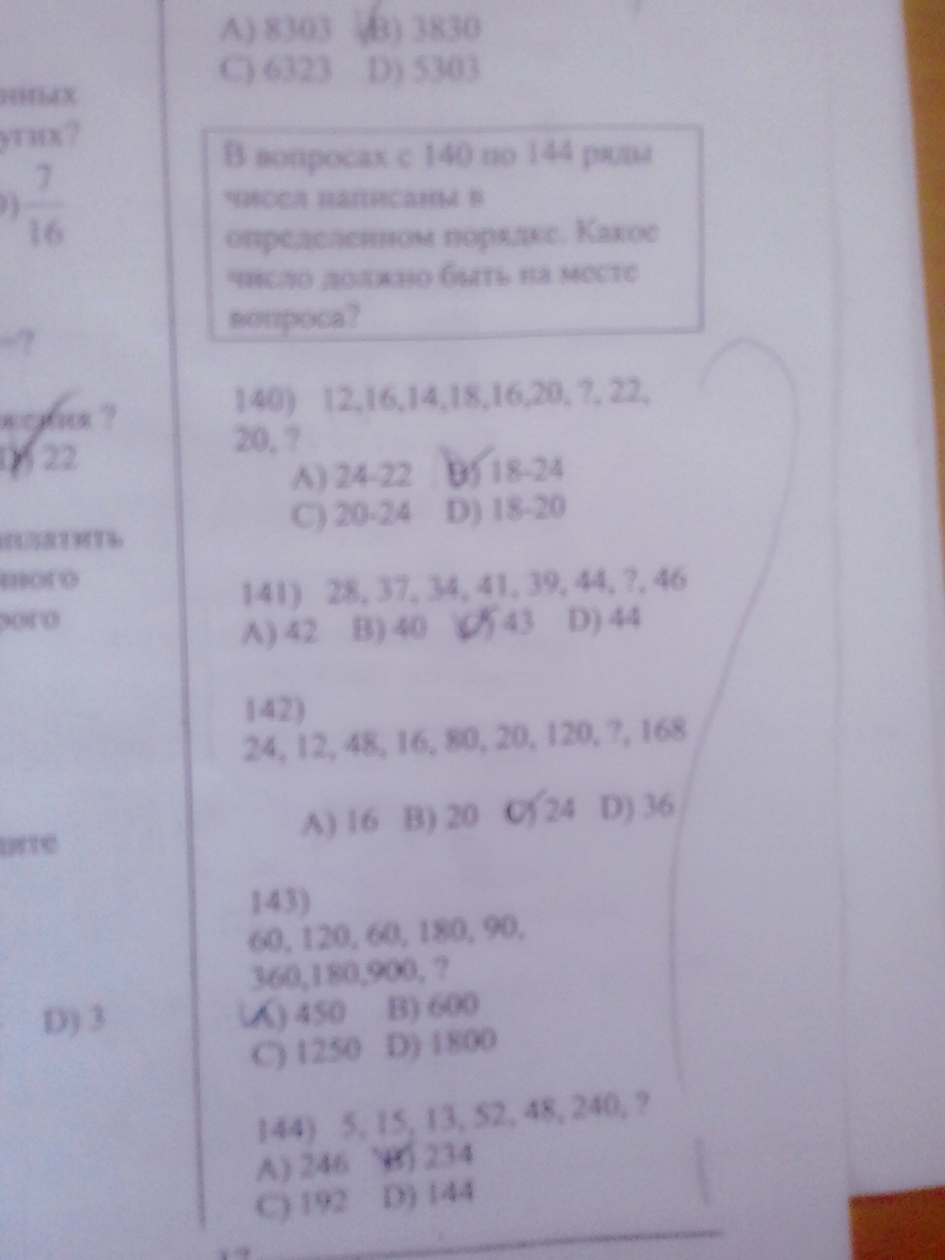 В вопросах с 140 по 144 ряды чисел написаны в определенном порядке.Какое число должно быть на месте вопроса??? (с обяснением пожалуйста)