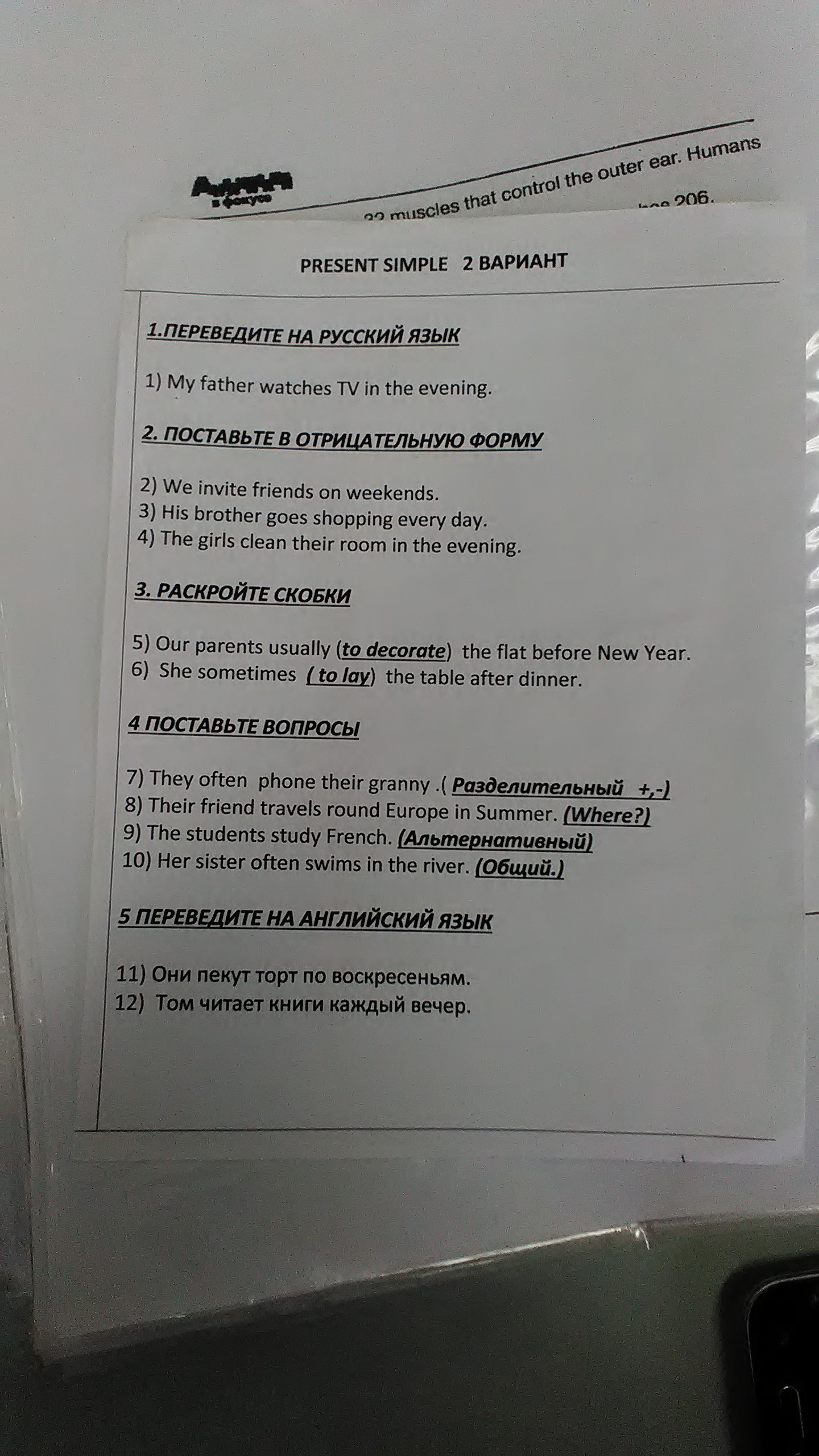 1) мой Папа смотрит телефо1) мой папа смотрит телевизор по вечерам