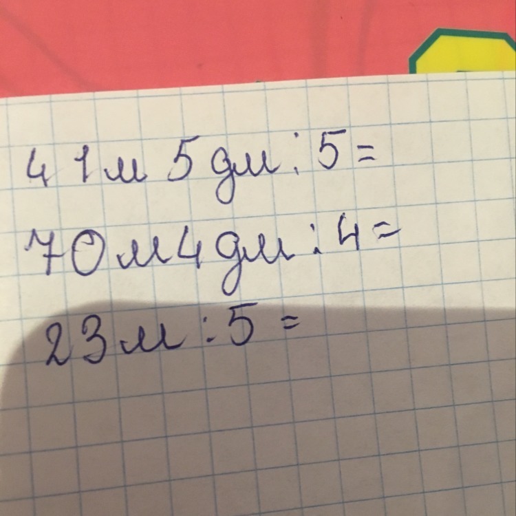 23м:5 = 230дм:5 = 46дм = 4м6дм