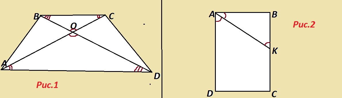 2) ABCD-трапеция. Какой треугольник подобен треугольнику BOC (О - точка пересечения диагоналей)