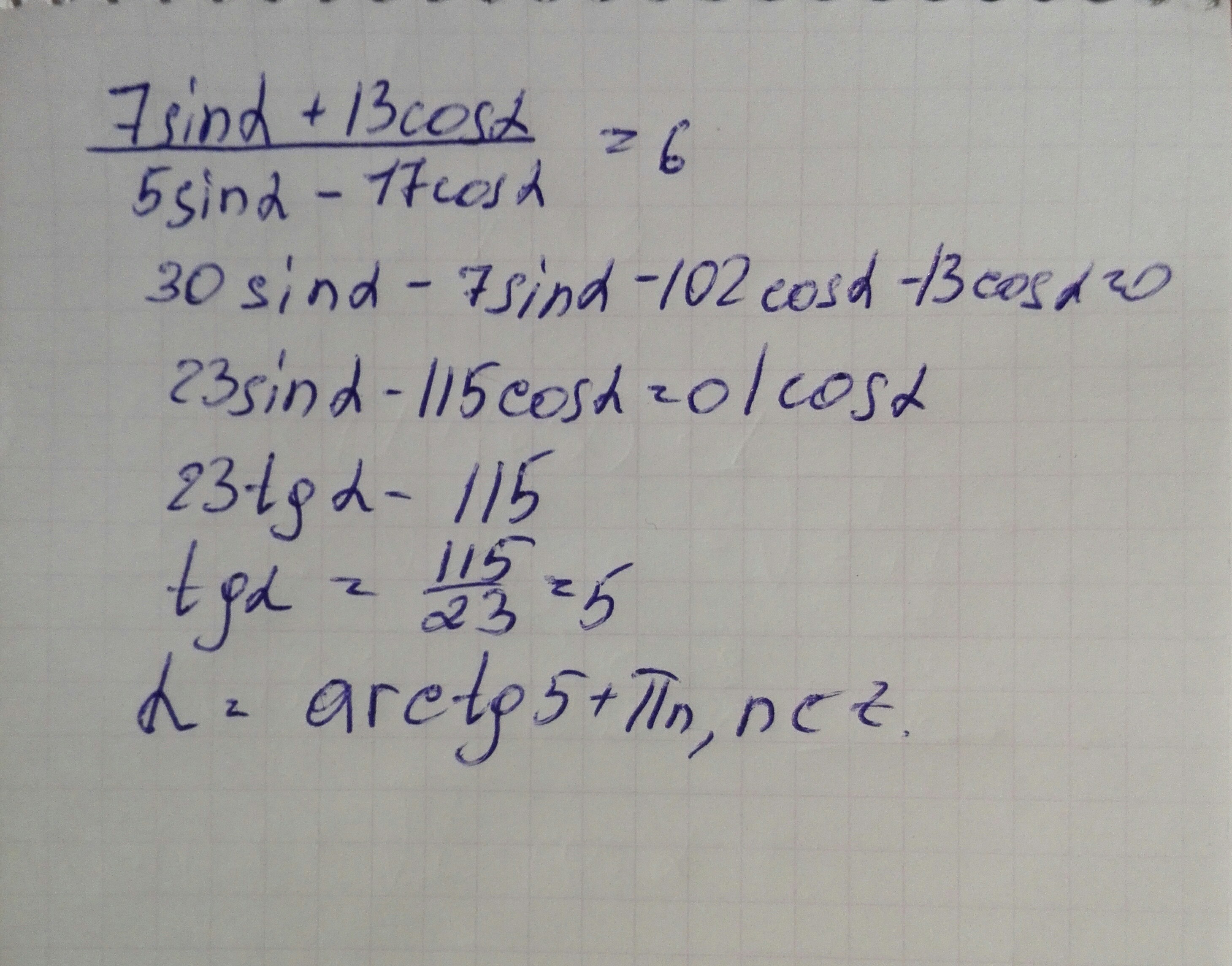 найти tga если 7sina+13cosa/5sina-17cosa=6