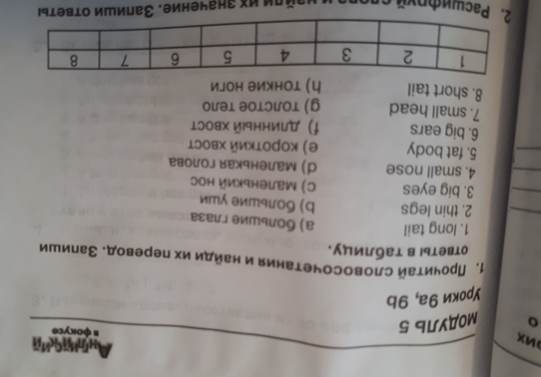 Прочитай словосочетания и найди их перевод. запиши ответы в таблицу.