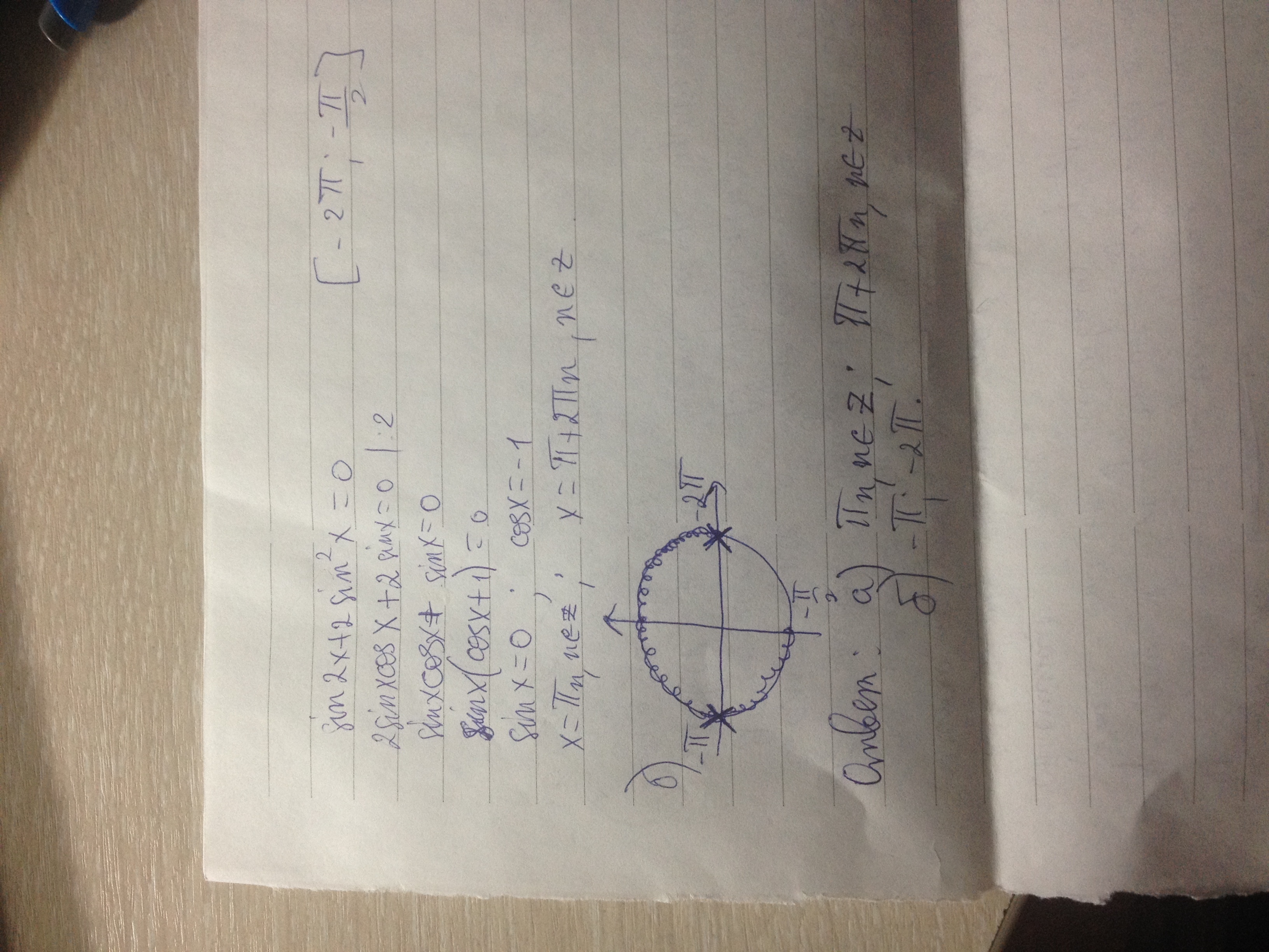 sin2x+2sin квадрате x =0 [-2пи;-пи попалам