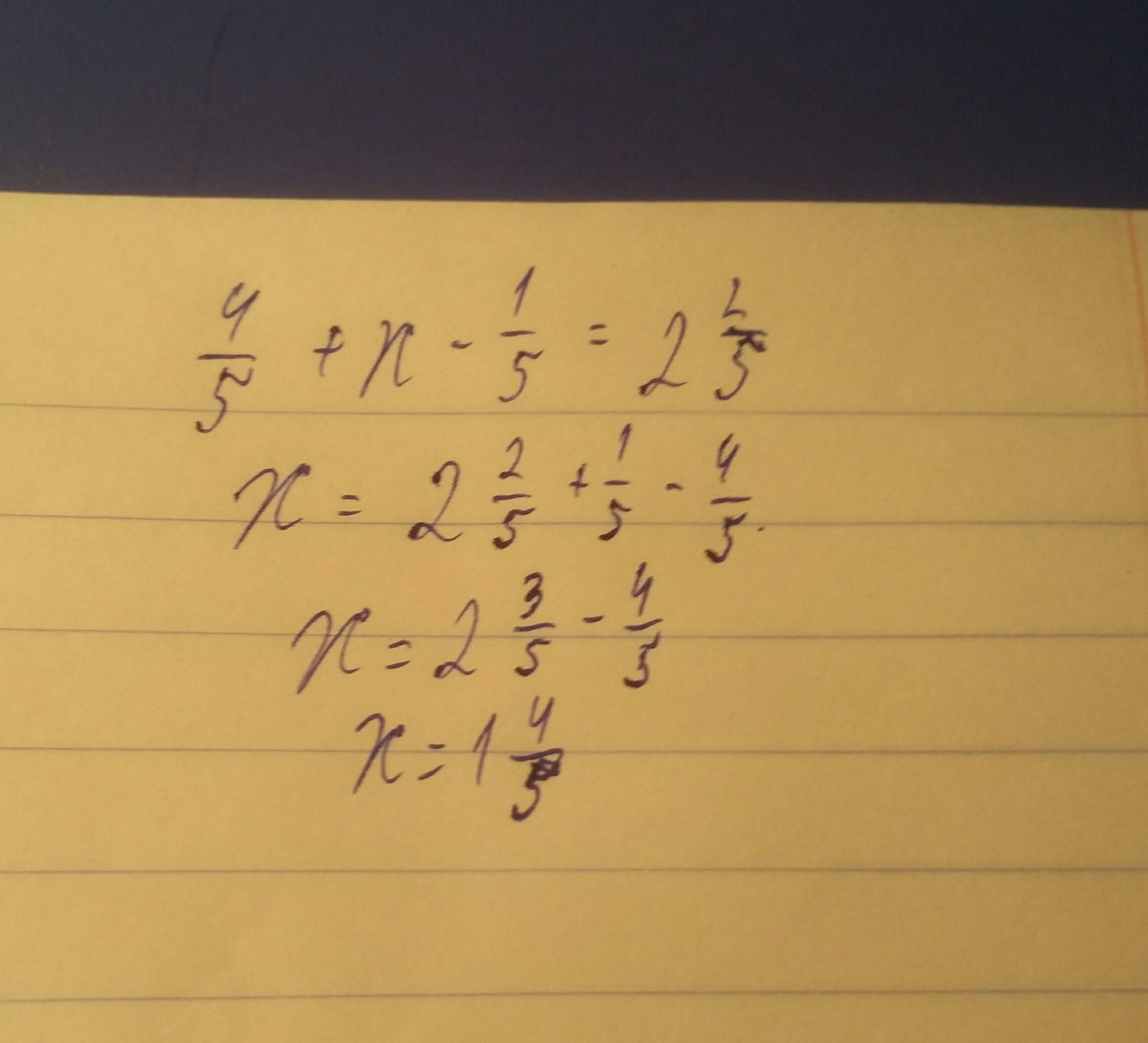4/5+x-1/5=2 2/5