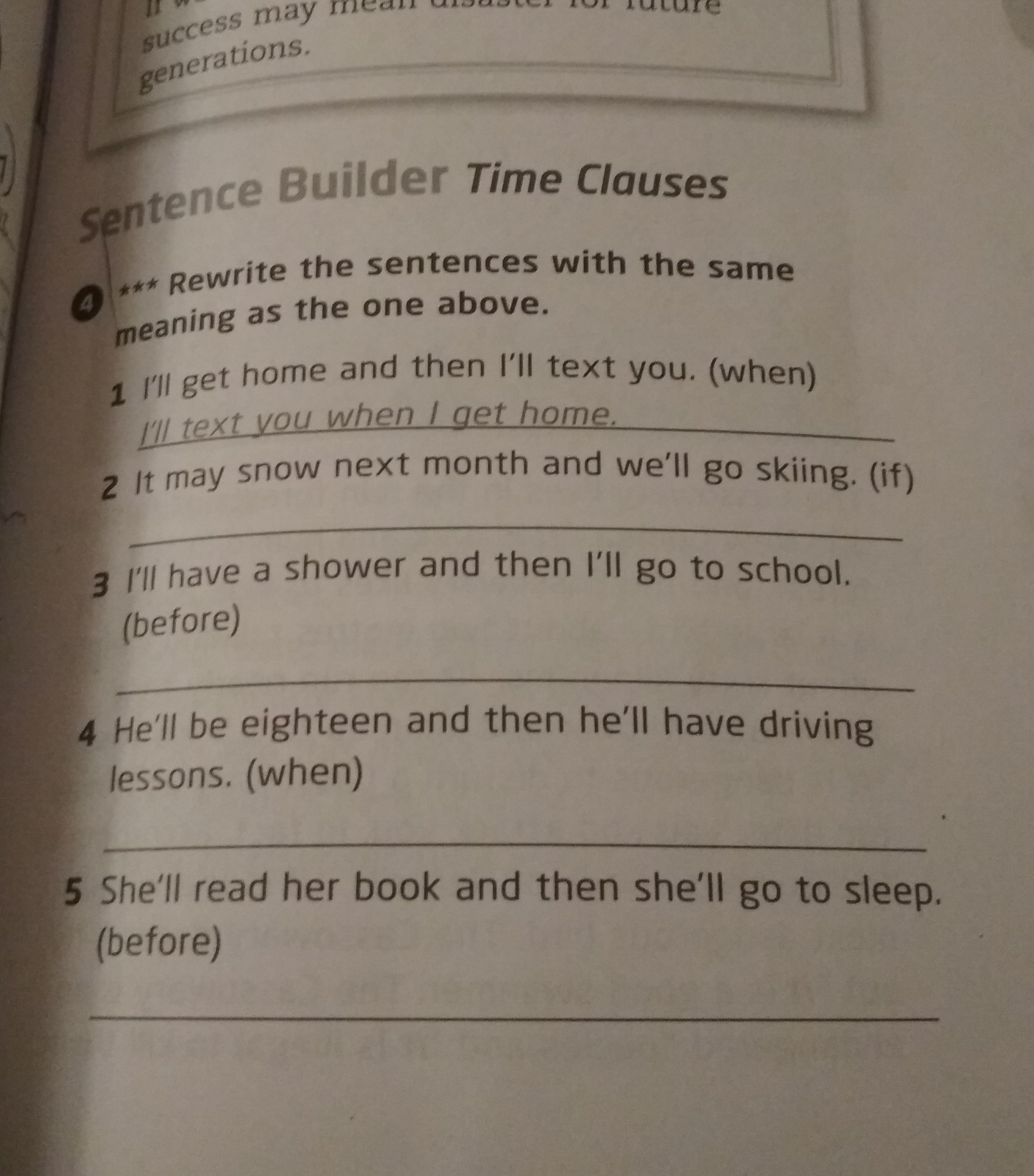 1.i'll have a shower and then 2.i'll go to shcool (before)=> i'll go to shcool BEFORE i'll have a shower