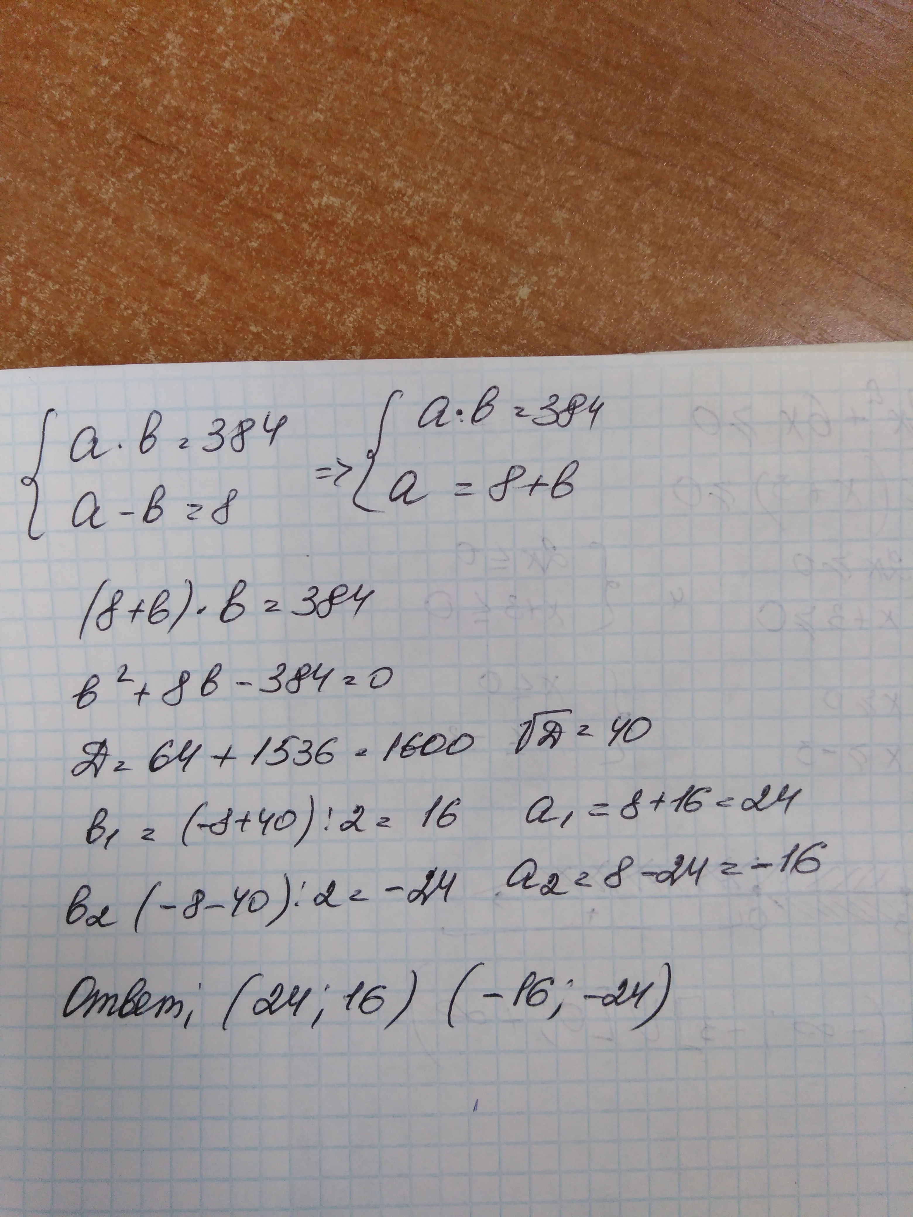 разложите число 384 на два множителя так , чтобы разность между ними равнялась 8. СДЕЛАЙТЕ РЕШЕНИЕ ПОЖАЛУЙСТА
