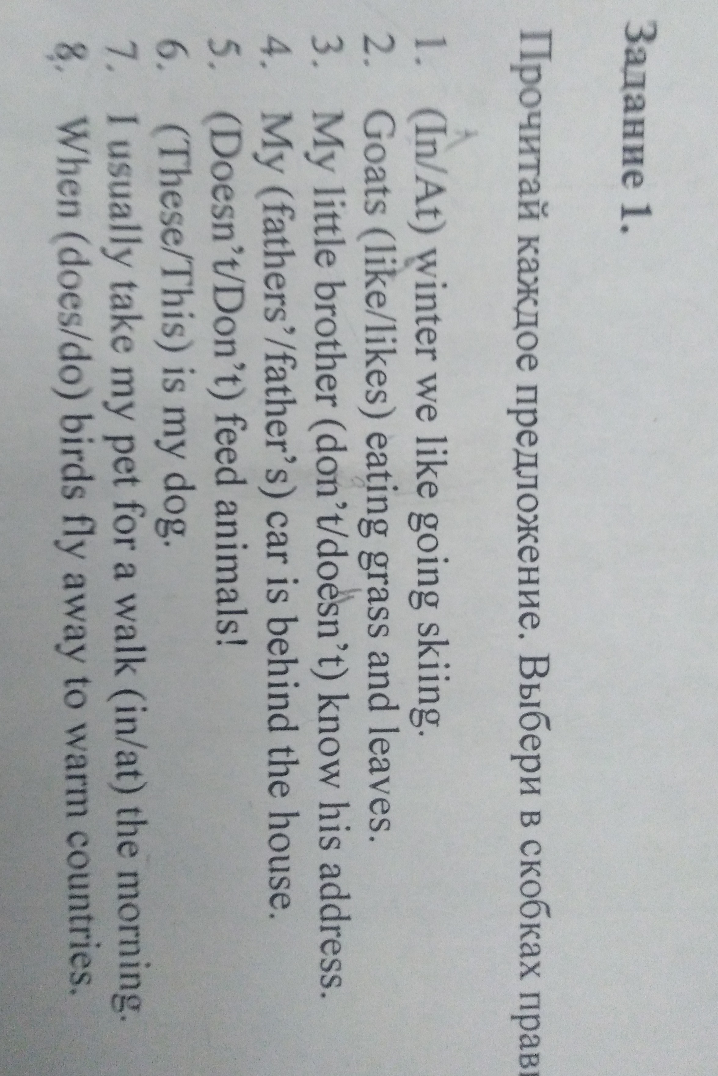 Прочитай каждое предложение. Выбери в скобках правильный вариант и объединение его