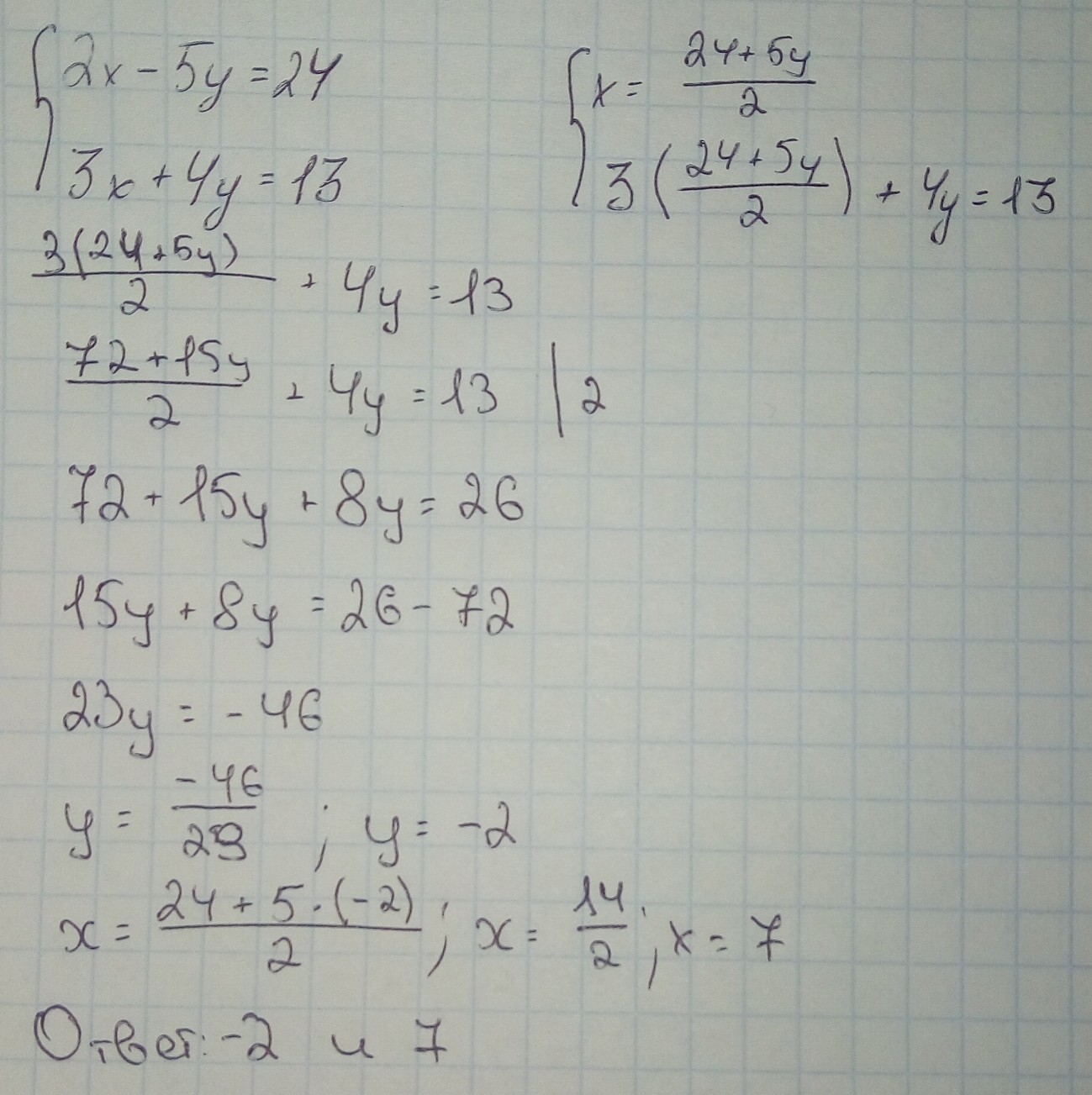 {2х-5у=24