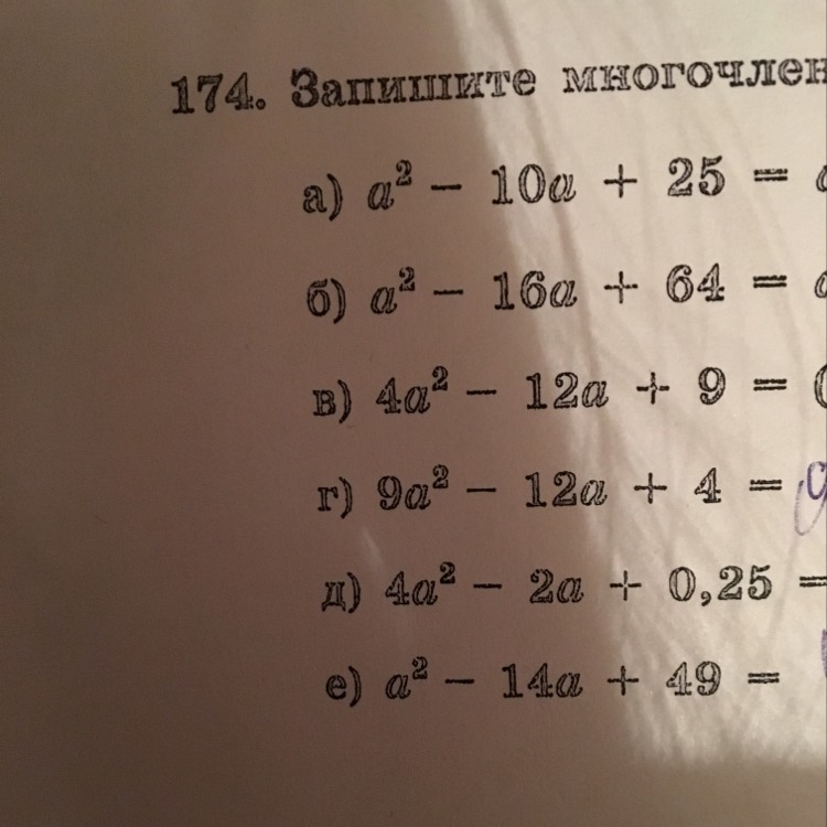 д) 4а²–2а+0,25=(2а)²–2·2а·0,5+0,5²=(2а–0,5)²