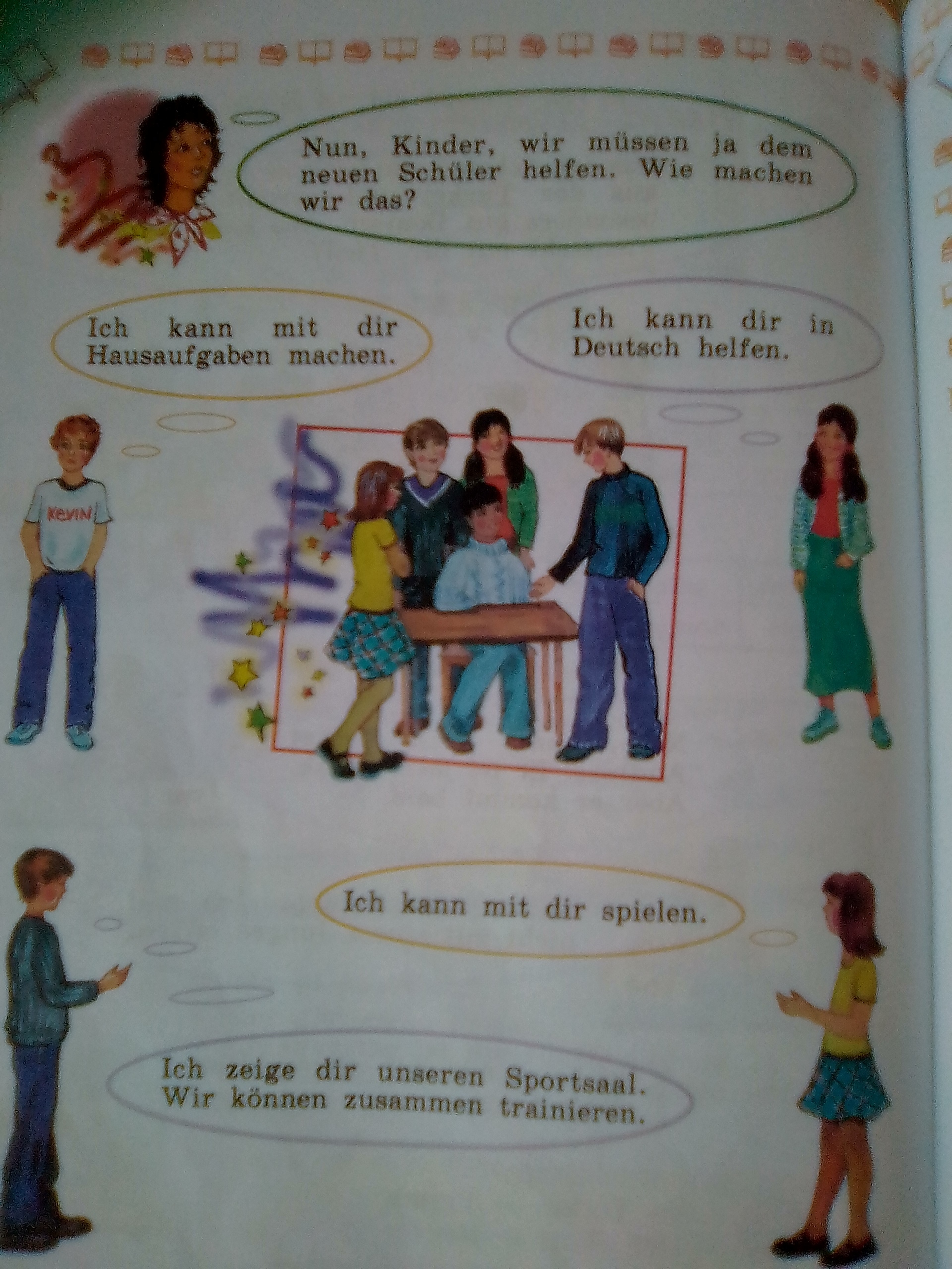 Ну , дети, мы должны новому ученику помочь. Как мы это сделаем?