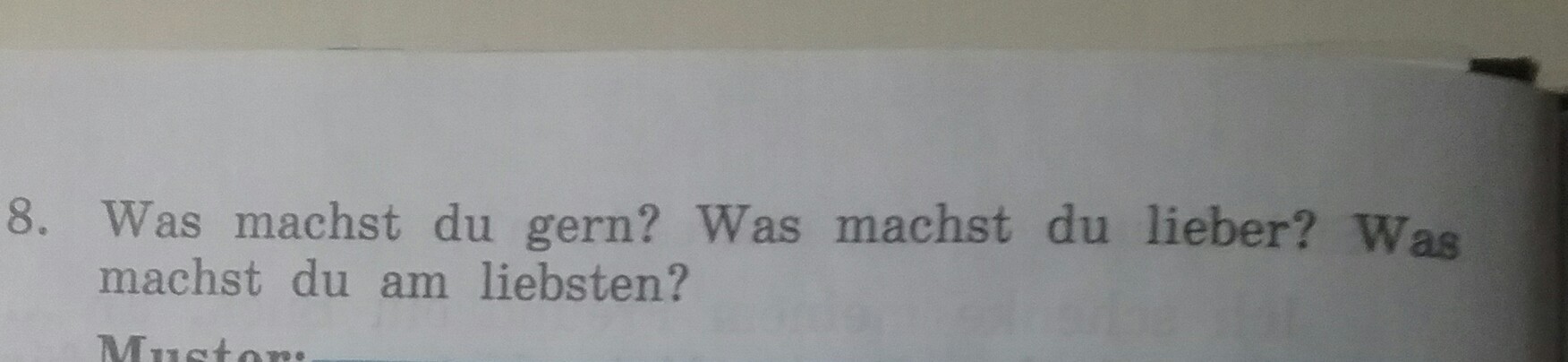 1)ich mache gern singen 2)Ich mache liber tanze 3)Ich mache am liebsten male