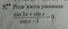 Решить уравнение sin3x-sinx/sinx-1 = 0 подробно