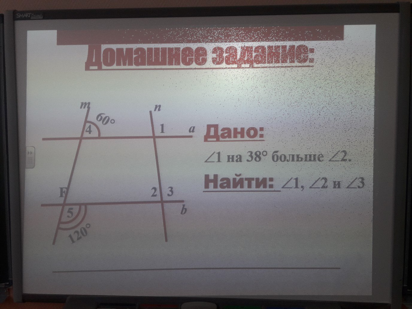 угол 1 равен 60 градусов и угол 3 равен 60 градусов, а угол 2 равен 120 градусов