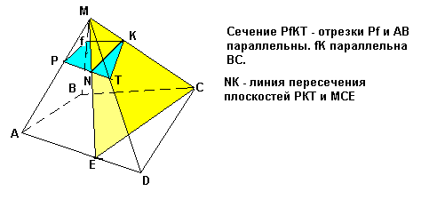 Соединить ЖИРНО общие точки для обоих плоскостей: точку пересечения РТ и МЕ, с точкой К.