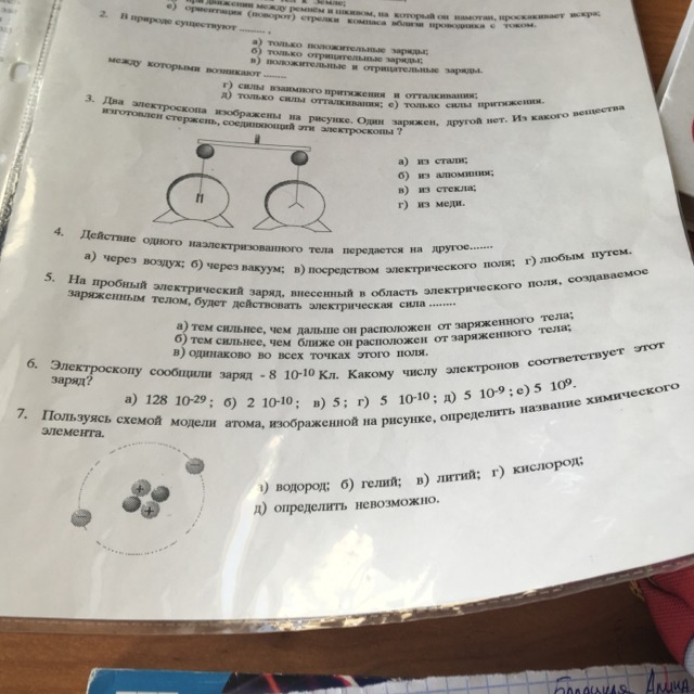Помогите! Физика! Тема: Электризация тел. Строение атома. НОМЕР 6