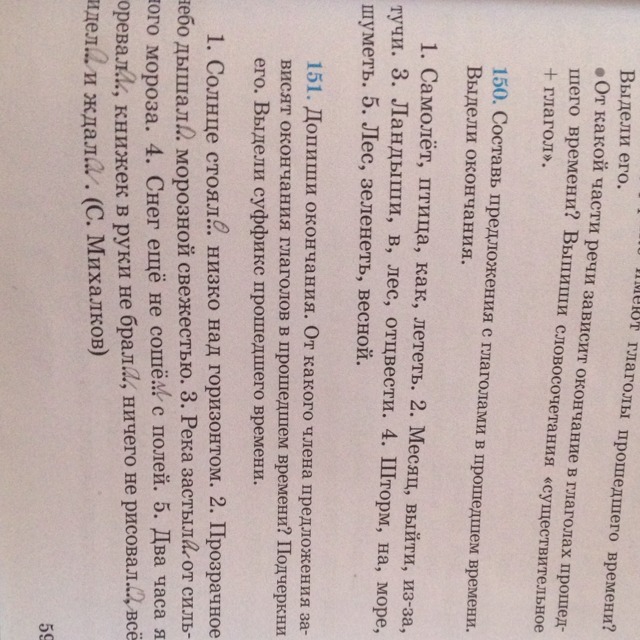 Самолёт летел прямо над нами! (окончание -ел-)