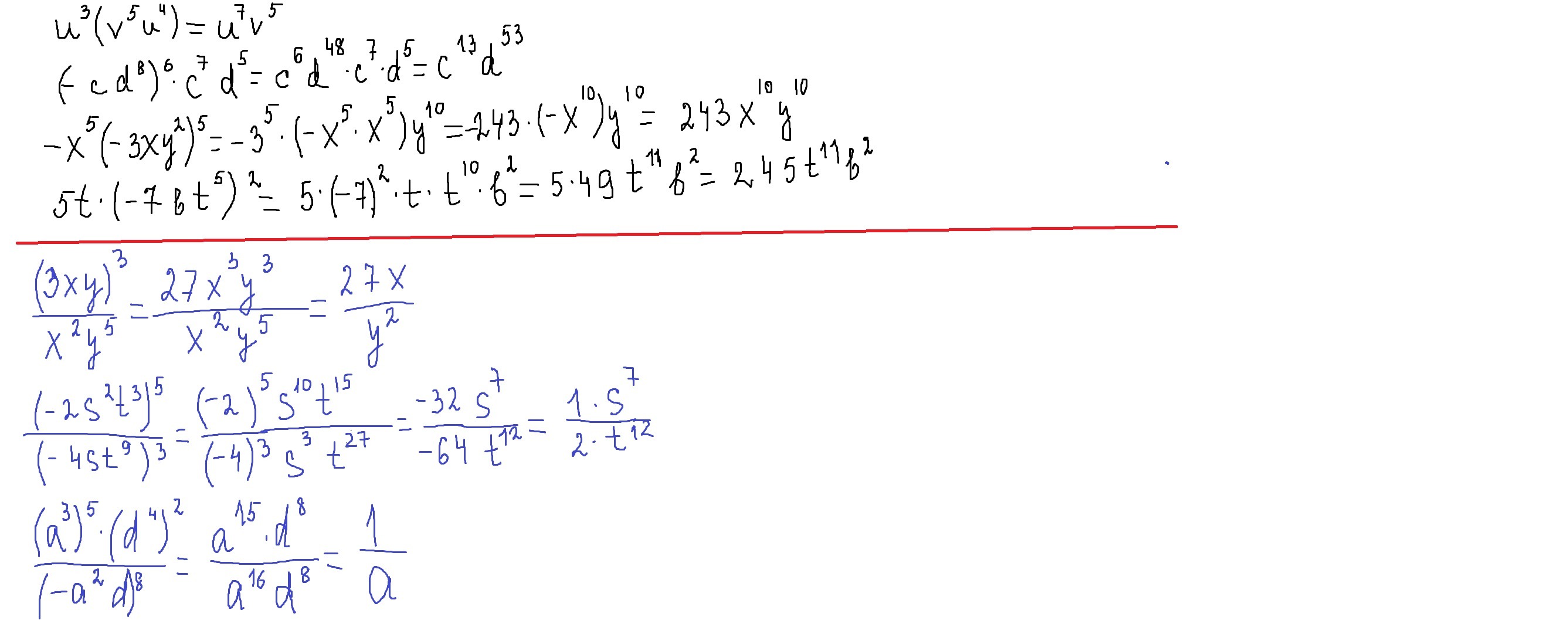 при умножении степеней с одинаковым основанием показатели складываются,при делении-вычитаются,при возведении степени в степень-перемножаются.