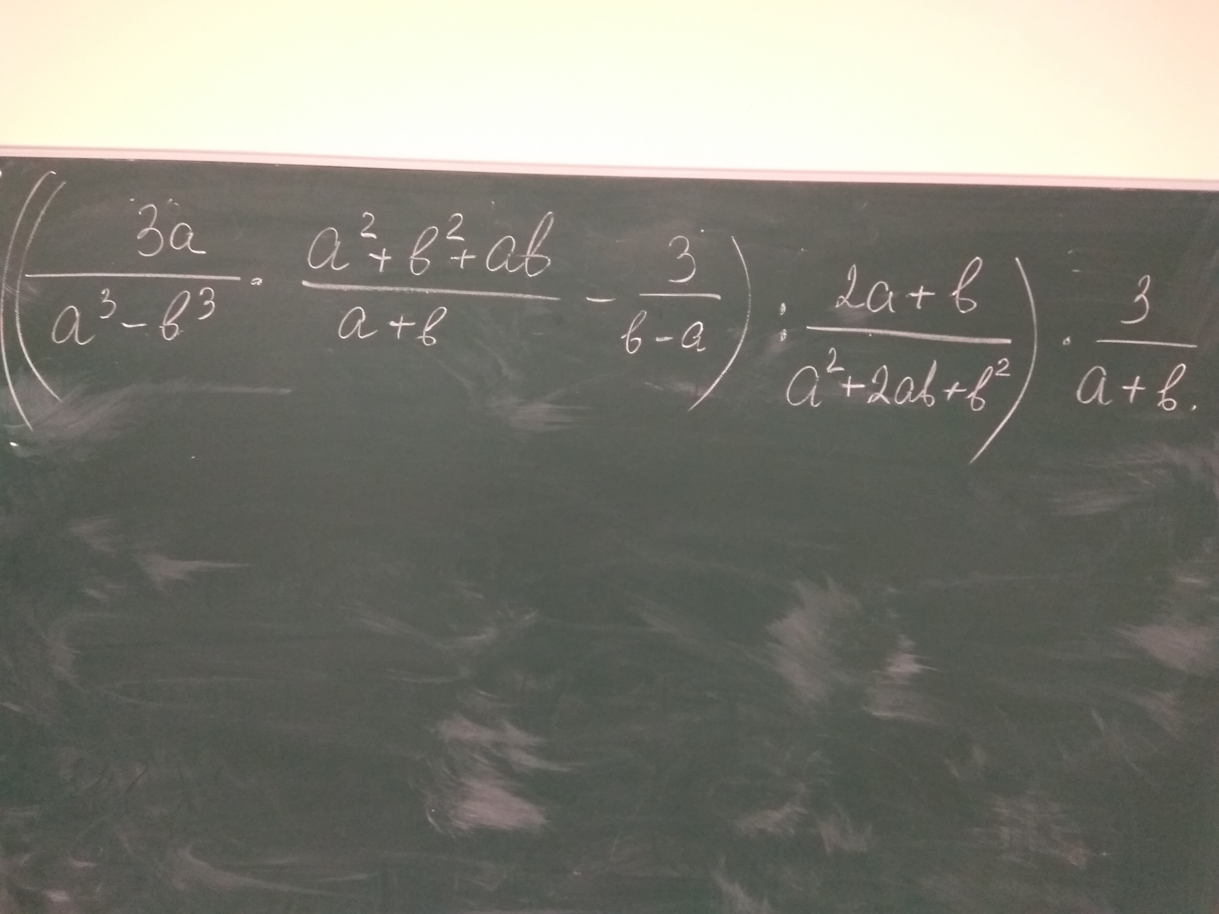 ((3а/(а-b)(a^2+ab+b^2) * (a^2+b^2+ab)/a+b -3/b-a):(2a+b)/(a+b)^2)*3/a+b=