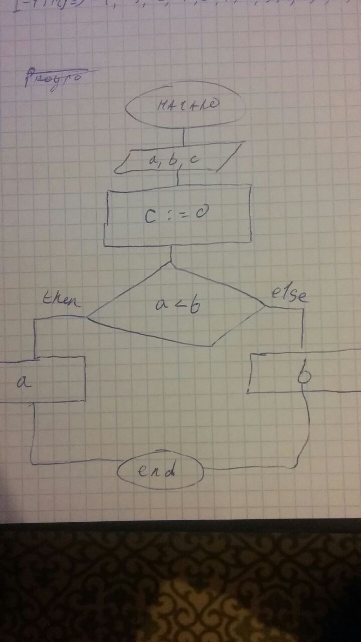 Составить алгоритм нахождения меньшего из двух чисел,если они равны,то меньшее считать любое