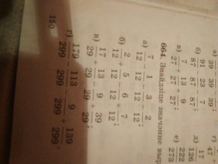г) 179/299 - 113/299 - 9/299 + 139/299 = 196/299