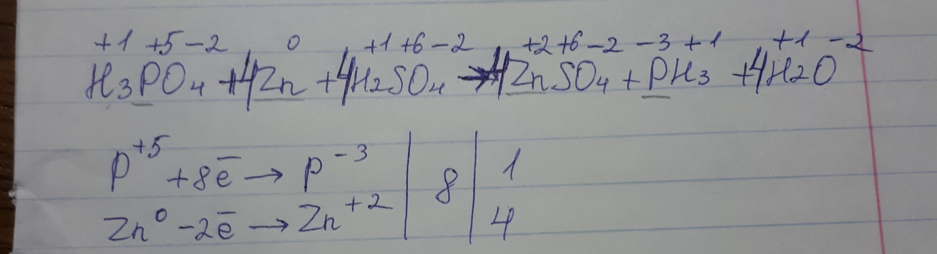 Скласти окисно-відновну реакцію H3PO4+Zn+H2SO4=ZnSo4+PH3+H2O