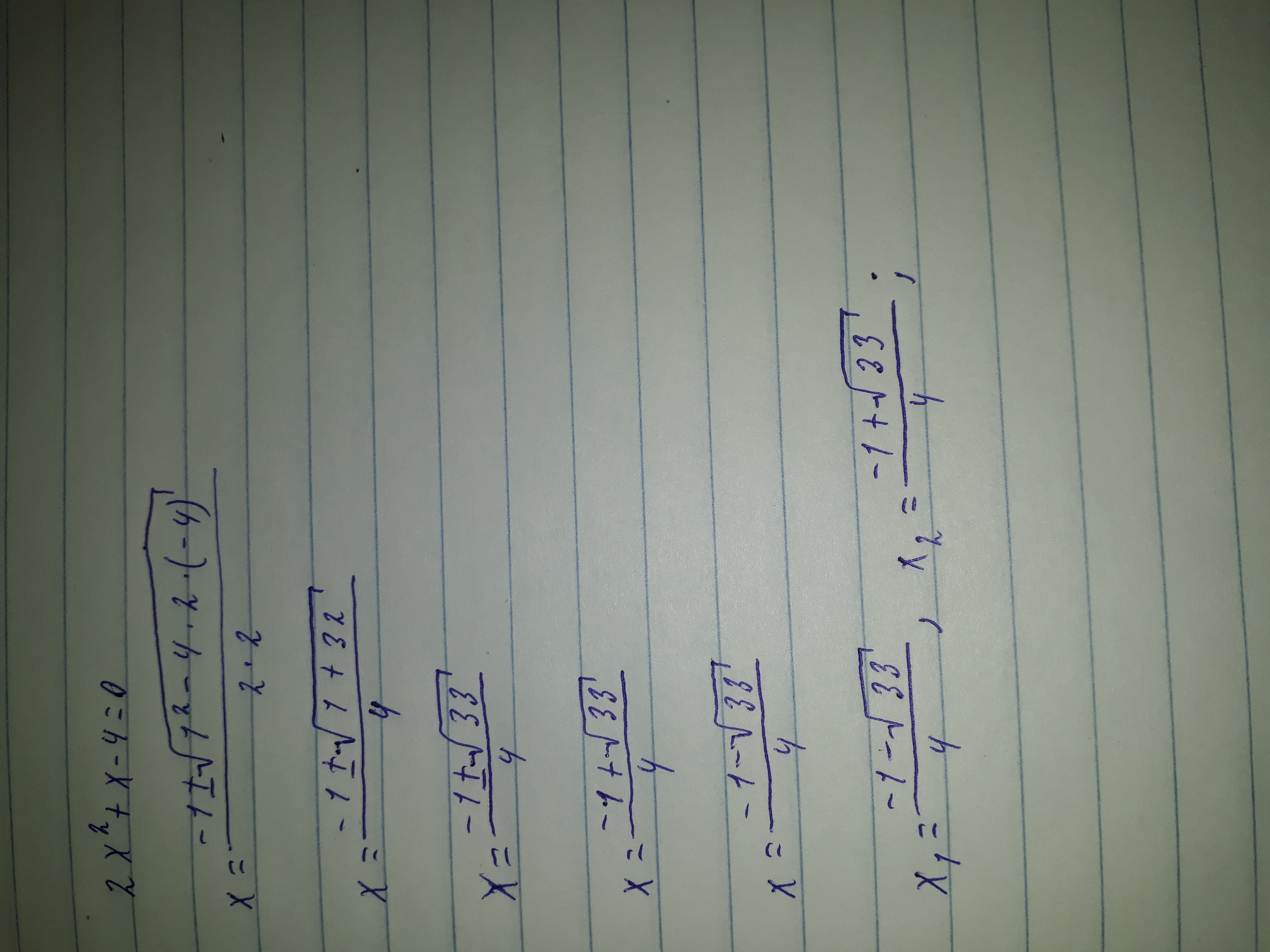2x²+x-4=0 решите уравнение
