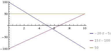 построить график х1=100-20t x2= -100+15t x3=50