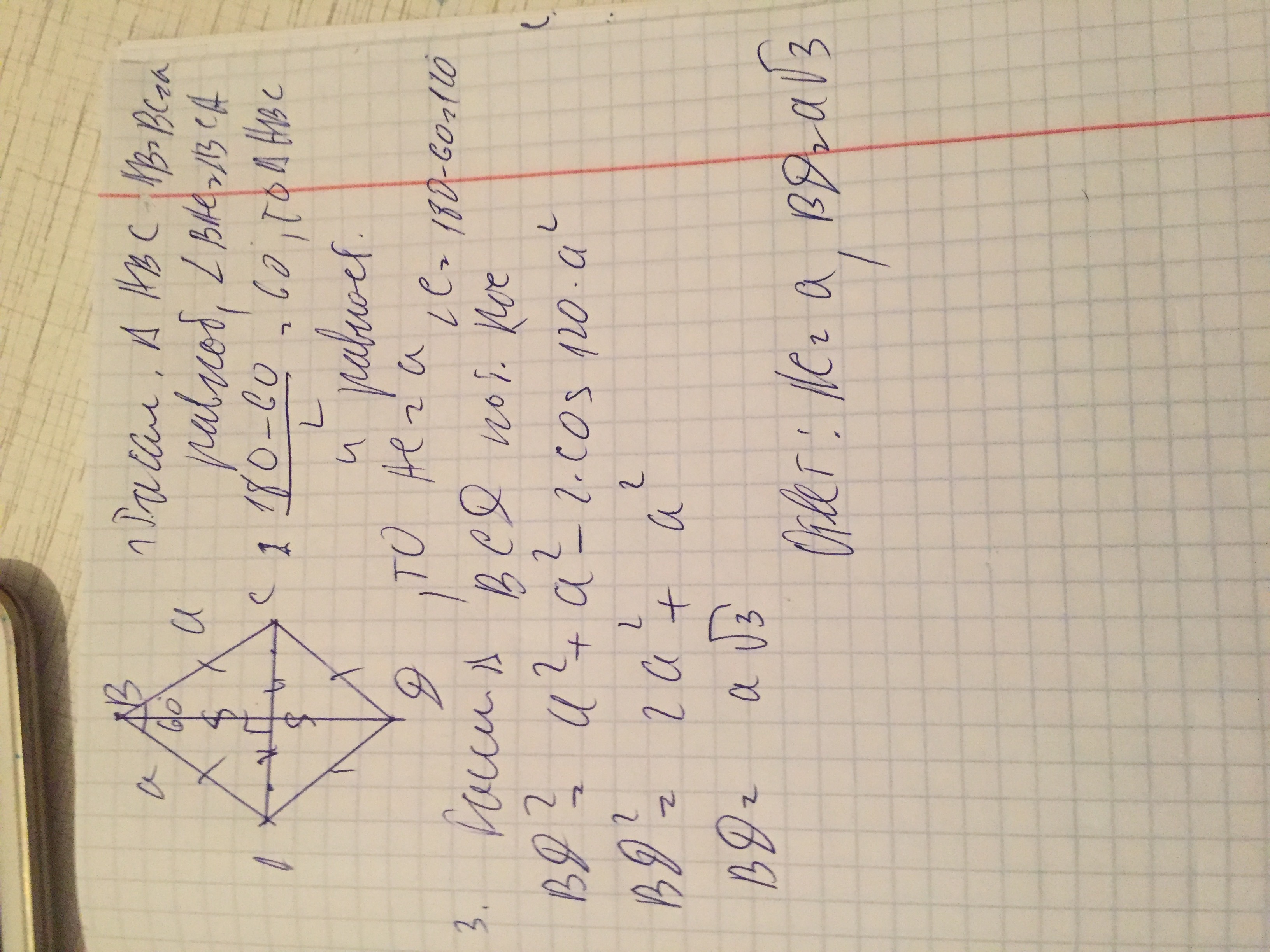 Сторона ромба =а,а один із кутів 60 градусів.Знайти діагоналі ромба.