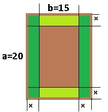 на прямоугольном участке земли размеры которого 15м и 20м,собираются по периметру создать травяную полосу поставленной ширины. какова может быть ширина этой полосы чтобы она заняла не более 25% всего участка?