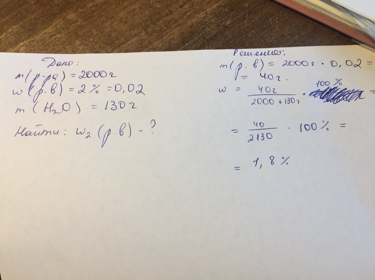 Смешали 2000г 2% раствора фруктозы со 130г воды. Определите массовую долю вещества в полученном растворе