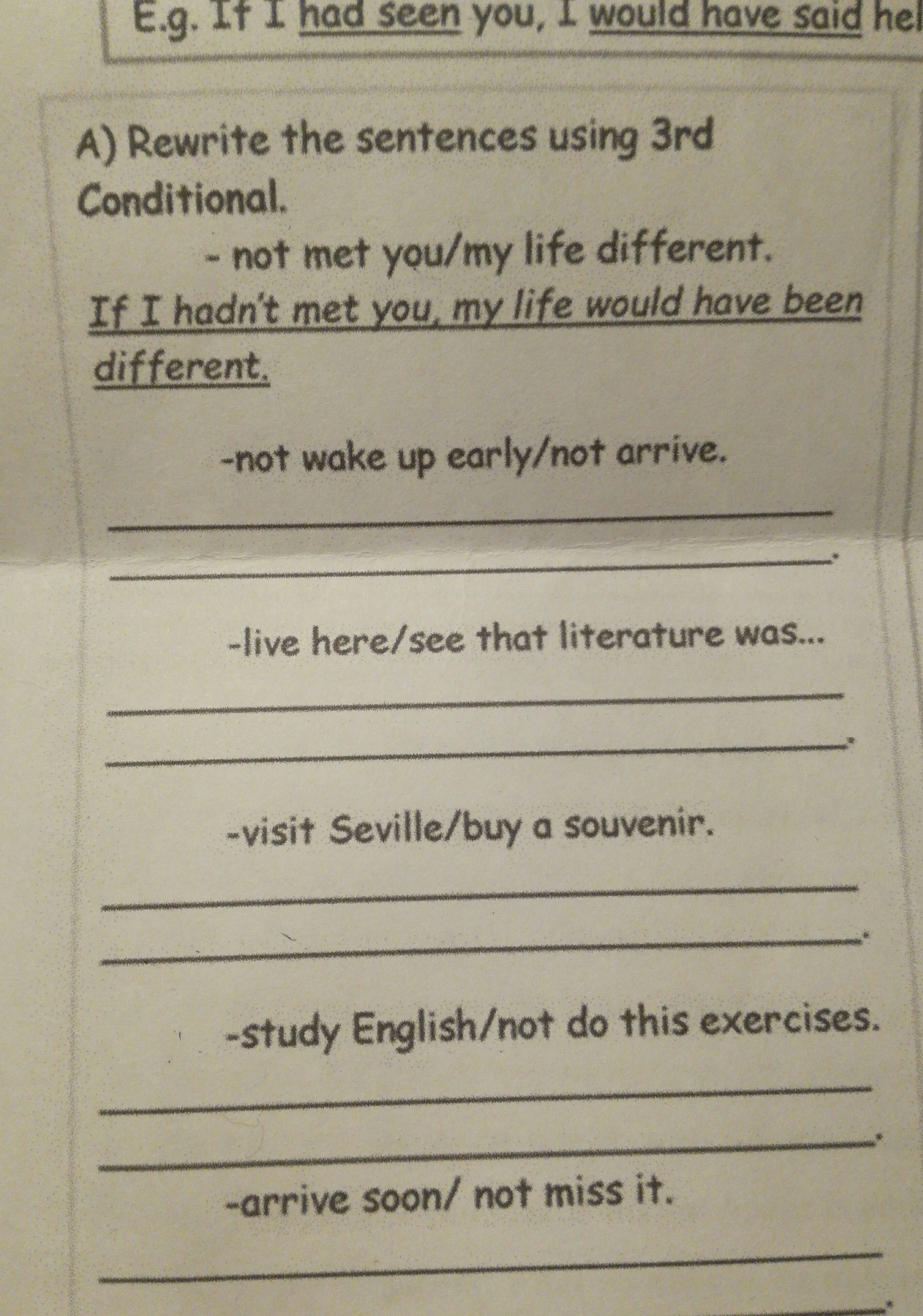 нужно переписать предложения с помощью 3-го условного